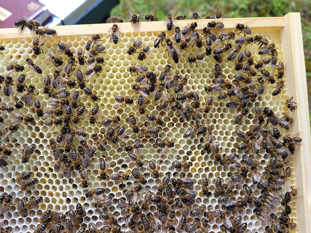 We have inspected and monitored their progress over the last two months. We have seen no sign of diseases and they are building well. Recently we have moved them on to a full hive and they have plenty of time to build up before winter. Up to date pictures below.