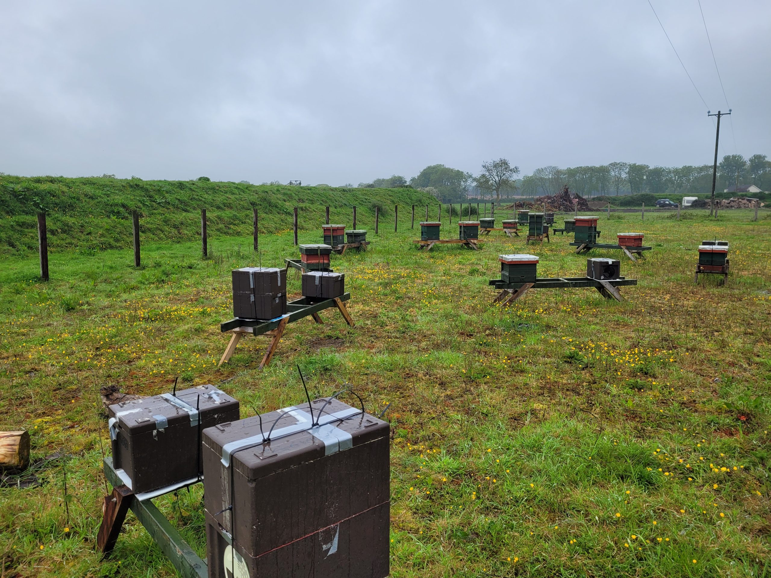 As a member of the Native Irish Honey Bee Society (NHIBS) and Louth Bee Keepers Association (LBKA) we have been trained in the production/rearing of virgin queens. At Boyles Irish Pantry we are committed to this ongoing work. We select colonies with known AMM genetics and a number of traits such as docility, disease resilience, brood pattern and honey production for a breeding mother. Virgin queens are moved to mating apiaries a great distance away to reduce the risk of inbreeding. Virgin queens get mated and start producing eggs and that’s when their records start. Each newly mated queen is given an ID number which traces back to their mother, mated apiary and first eggs produced. In this manner if brood produced by this queen is seen to be hybridised in any way, we know firstly that we should not use this queen to breed from but secondly her drones being genetic carbon copies of the queen are still ok and will not continue a hybrid line. Any queens with unknown genetic such as swarms collected or removals from buildings that show signs of hybridization are stopped from producing drones and re-queened with known genetics. Sometimes we are lucky enough to have queens with unknown lineage show no signs of hybridisation and eventually blend in successfully.
